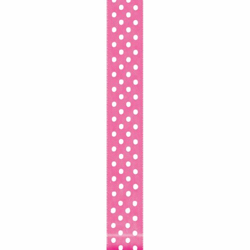 Offray White Satin Dot Craft Ribbon, 7/8-Inch x 9-Feet, Hot Pink