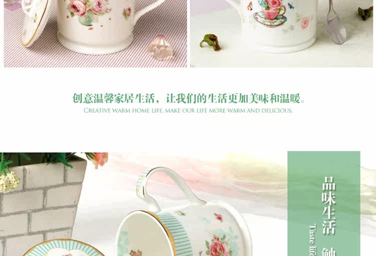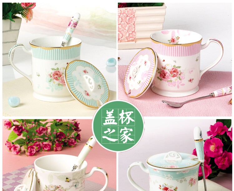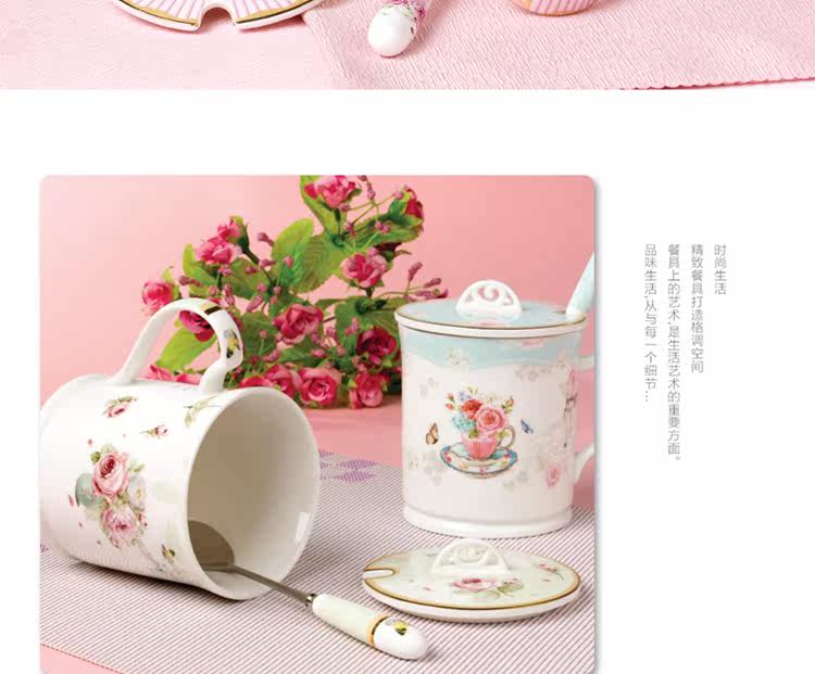 创意情侣对杯带盖勺陶瓷马克盖杯套装礼盒个性水杯礼办公室咖啡杯