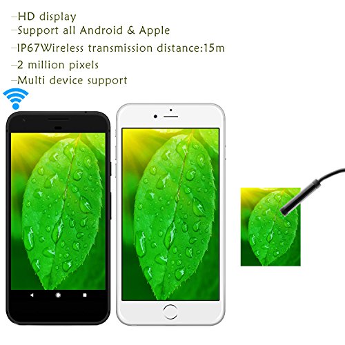 - Wireless & Easy to Set Up:Without using extra adapter or cable, this Wireless Endoscope can be easily connected with serveral smartphones via WIFI after you scan QR code in manual,download and install the compatible APP on your device.