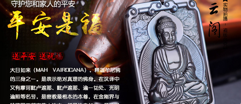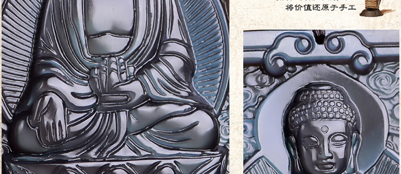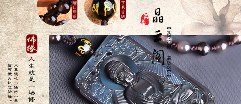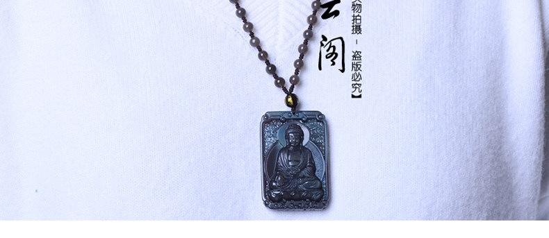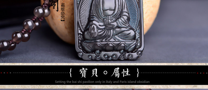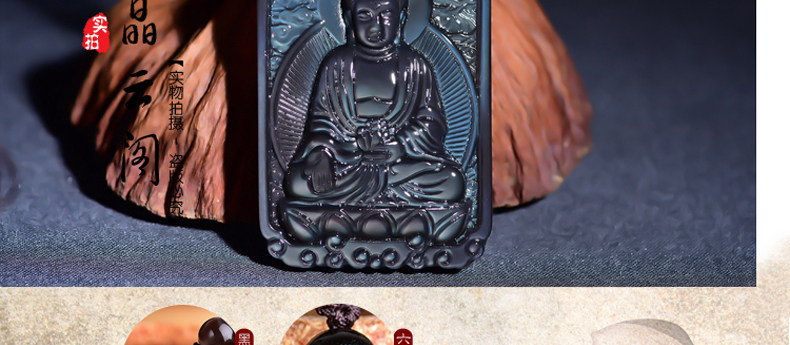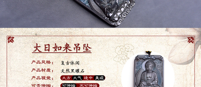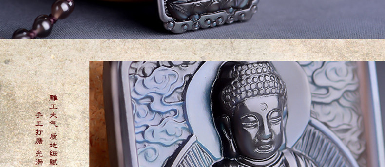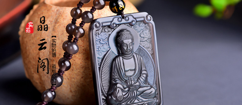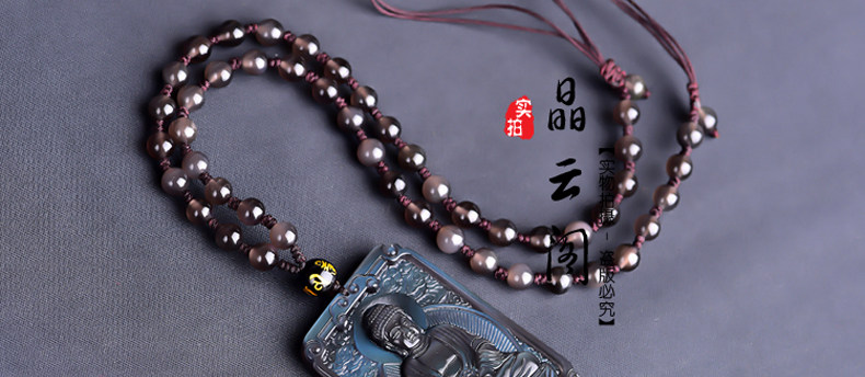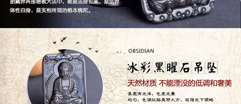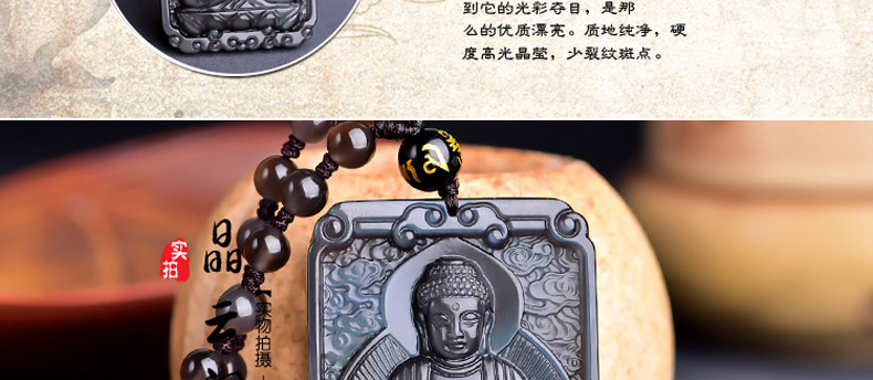 开光 天然冰彩黑曜石大日如来菩萨 生肖羊猴本命佛守护神吊坠项链