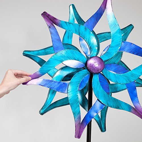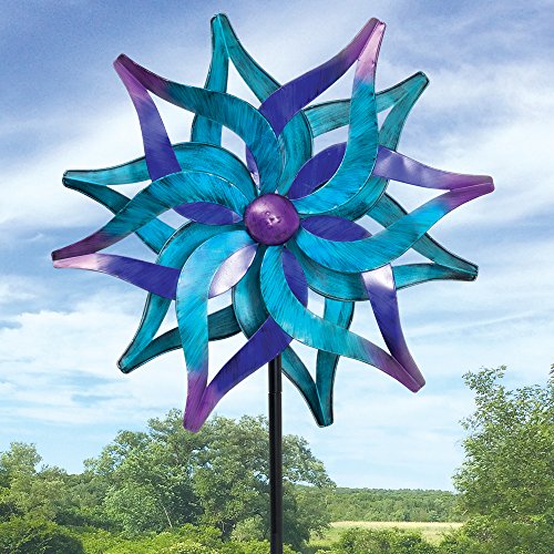 Our two-sided spinner is an amazing blend of turquoise, blue, purple and violet color spinning in your yard or garden.