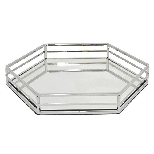 Benzara HRT-29565 Benzara 14" Silver Metal Tray with Mirror
