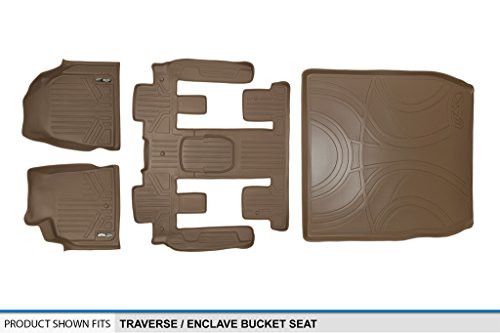 -. Binding : Automotive -. Brand : MAXLINER -. ClothingSize : Fit for Specific Vehicle -. Color : Tan -. Department : unisex-adult -. EAN : 0707152344487 -. Feature : Only fits vehicles with 2nd row bucket seats. 2nd row floor mat covers 2nd and 3rd row seating area. Cargo liner covers behind the 2nd row seats / Top of the line stain-resistant all-weather durability that gives your interior a first class look / Custom fit precision of the mat protects your floor by stopping spills and any other mess thanks to the liners raised and strengthened lip / Textured skid-resistant surface that is easily cleaned / Lifetime warranty -. IsAutographed : 0 -. IsMemorabilia : 0 -. Label : MAXLINER -. Manufacturer : MAXLINER -. ManufacturerPartsWarrantyDescription : Parts -. Model : A1043/B1044/D1043 -. MPN : A1043/B1044/D1043 -. PackageQuantity : 4 -. PartNumber : A1043/B1044/D1043 -. ProductGroup : Automotive Parts and Accessories -. ProductTypeName : AUTO_ACCESSORY -. Publisher : MAXLINER -. ReleaseDate : 2015-07-14 -. Size : Fit for Specific Vehicle -. Studio : MAXLINER -. Title : MAXFLOORMAT Floor Mats (3 Rows) and MAXTRAY Cargo Liner Behind 2nd Row Set Tan for Traverse / Enclave With 2nd Row Bucket Seats -. UPC : 707152344487
