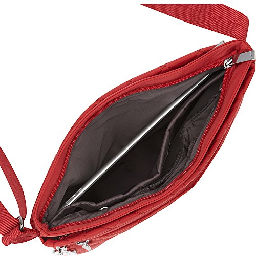 -. Feature : Zippered main compartment / Adjustable shoulder strap / Pockets for cards, cell phones, pens and more / Holds a tablet / 11.6x1.6x9.8