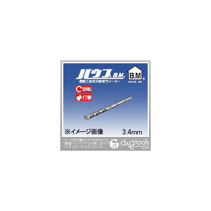 원본상품명: ハウスビ?エム インパクトZ軸ビット(SDSタイプ)(?量ハンマ?ドリル用) Zタイプ(レギュラ?) (Z-3.4) SDSプラス SDS プラス デルタゴンビット