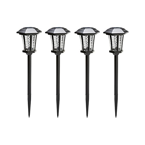 4 Water Glass Solar Path Lights, Black Metal Finish, Warm White LEDs, Traditional Design, Waterproof, Batteries Included