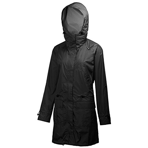 FEATURES of the Helly Hansen Women's Somerville Rain Coat Helly Tech Protection Waterproof, windproof and breathable 2, 5 Ply fabric construction Fully seam sealed Durable Water Repellency treatment (DWR) Mechanical venting back Lined hood Full center front storm flap with snap buttons Hand wamer pockets Cargo pockets Bottom hem adjustment Waist cinch Roll up sleeves SPECIFICATIONS of the Helly Hansen Women's Somerville Rain Coat Face: 100% Polyester Back: 100% PU Regular fitFeature