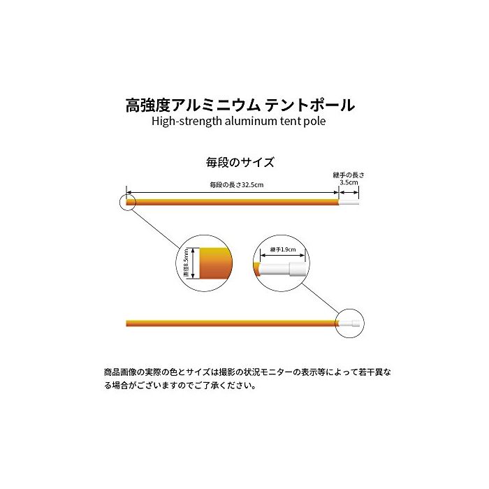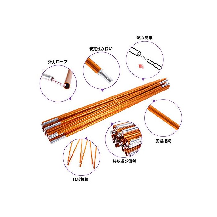 【내식성,안정성】알루미늄 재질로 만들어진 텐트 폴입니다.가볍고, 强도가 좋다.내식성도 내구력도 강합니다.긴 시간 사용으로 옵니다.사용중,제대로 지원해 줍니다.안정 하고, 강풍에서도 견디 #고 있습니다.