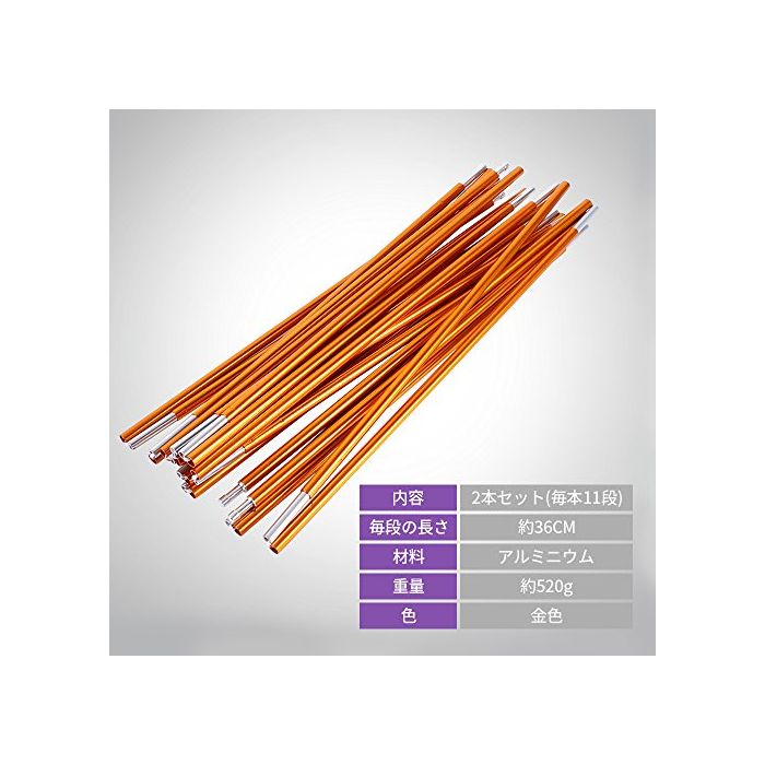 원본상품명: テントポル タプポル 2本セット(本11段、段約40CM) ライト アルミ ポル