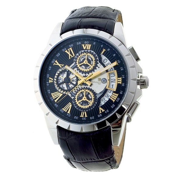 | サイズ | (約)H43×W43×D13mm (ラグ、リューズを除く)、重さ(約)75g、腕回り最大(約)20cm、腕回り最小(約)15.5cm、ベルト幅最大(約)22mm、ベルト幅最小(約)20mm | | 素材 | ステンレス(ケース)、レザー(ベルト) | | 仕様 | クオーツ、5気圧防水、クロノグラフ、日付カレンダー、カラー:ブラック×ゴールド(文字盤)、ブラック(ベルト) | | 付属品 | ケース、保証書、取扱説明書 | | 保証期間 | 1年間 |