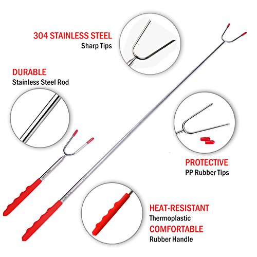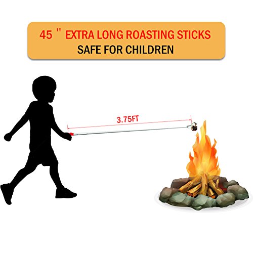 SAFE FOR CHILDREN: Have peace of mind while your kiddo has fun; the extending roasting sticks keep kids away from the fire and include rubber caps to cover up the sharp prongs when you’re done cooking
