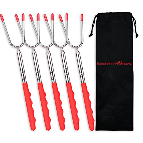 Marshmallow Roasting Sticks Smores Skewers: Stainless Steel Roasting Sticks for Bonfire, Fire Pit, Campfire: 45" Extendable Roasting Sticks with Handles & Carry Pouch: Safe Kid Forks (Stainless Steel)