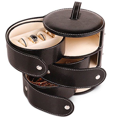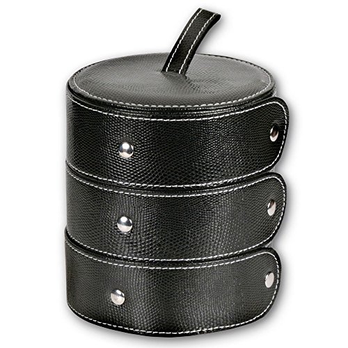 -. Feature : Black faux snake-skin leatherette jewelry box / Dimensions: 5.75H x 5.0L inches (Small) / Three Compartments / Travel Size