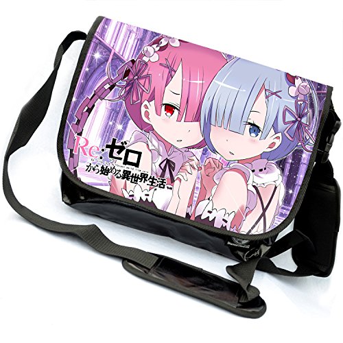 -. Title : Fashion Bright PU Leather Messenger bag for Japanese Manga Anime Re:Zero kara Hajimeru Isekai Seikatsu Rem & Ram Cos Gift