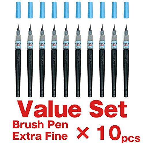 -. Title : Pentel Fude Brush Pen, Extra Fine, Value Set of 10 with Ecology Sticky Notes