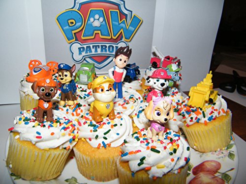 Nickelodeon PAW Patrol Figure Set of 12 Deluxe Mini Cake Toppers Cupcake Decorations Party favors Featuring Ryder, Marshall, Chase, Skye, 5 Vehicles and Special Gift
