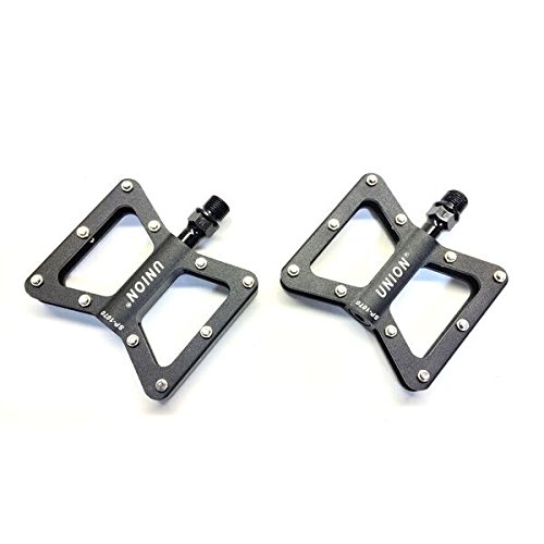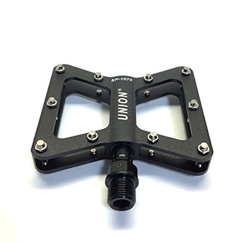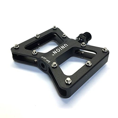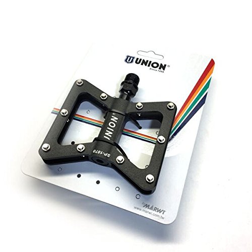 The Union brand founded in Germany in 1899 started producing bicycle chains and from there moved on to many bicycle components. UNION products are all rigorously tested under many conditions and pass ISO certifications. The UNION HP5 Series SP1070 Pedal allows you to ride on off road terrain with innovative no slip pins that help keep you on the pedals. This pedal is great and ideal for daily mountain bike, commuter, and even a hybrid bike.Feature