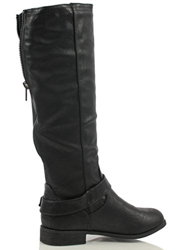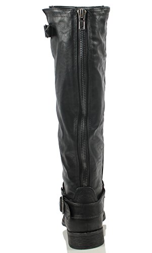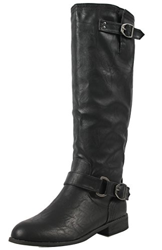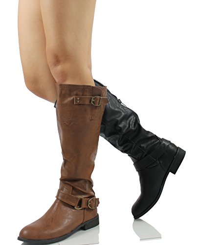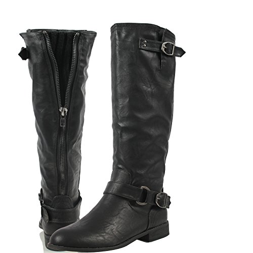Wild Diva Oksana-77 Women's Faux Leather Buckle Back Zipper Riding Knee High Boot