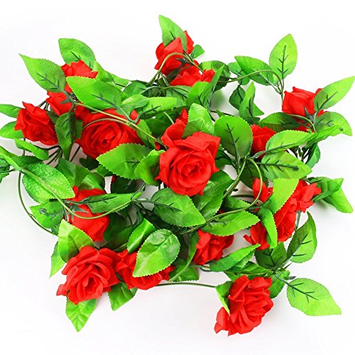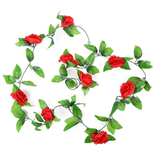 Duosuny 6.88 FT Rose Flower Garland Artificial Silk Flower Vine Garden Wedding Art Decor pack of 2 (Red)