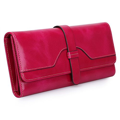-. Feature : SAFE WALLET: Customer Tested and Recommended, Protect Your valuable data - Block RFID Readers from Scanning Your Credit cards, Debit cards, Banking Information, Smartcards, RFID driver's licenses and other RFID Cards. / REAL LEATHER: Made of Top grain leather with wax finished, feels luxury and comfortable. Light gold tone hardware. Looks even better after using for a long time. Reasonable prices, big brand enjoyment. / ORGANIZED STRUCTURE: 12 RFID BLOCKING Credit Card Slots, 1 ID Window, 3 large cash/checkbook pockets, 1 zippered pocket. Large wallet for women, stylish design and huge capacity. Convenient feature for those who travel. / DIMENSIONS: 7.5"L x 4"W x 1"H. Fit iPhone 6 Plus or iphone 7 in here comfortably with all of your cards. Comes with a quality presentation Gift Box, for your own use or gifts is the best choice. / GUARANTEED: We know you'll love our wallet as much as we do, if you're not 100% SATISFIED, let us know and we will make things right: full refund or a free replacement, whichever you would prefer.