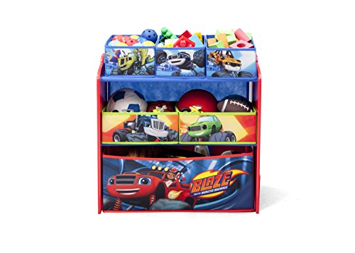 Bring the action and excitement of Blaze and the Monster Machines to playtime. The Blaze and the Monster Machines Multi-Bin Toy Organizer from Delta Children is designed to haul all types of toys, from big to small. Featuring six uniquely sized fabric bins and a sturdy wood frame, it's decorated with colorful artwork of Axel City's favorite Monster Machines, Blaze, Crusher, Pickle, Zeg, Darington and Stripes.Feature