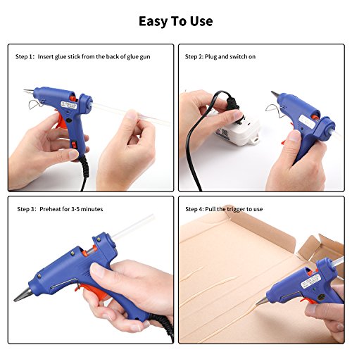 - FAFETY FOR USE: High quality gun shell and insulated nozzle, no deformation of the glue gun even long-term use under 500℉, with on/off switch on the handle for easy control.