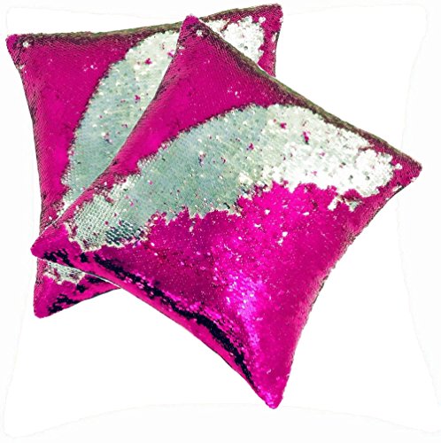 Magic Reversible Two-Tone Sequin Pillow Case 18"x18" Pack of 2 by DECOSY , Free Writing and Drawing with Finger Running - Mermaid Halloween Christmas Home Sofa Couch Decor (Hot Pink-Sliver)