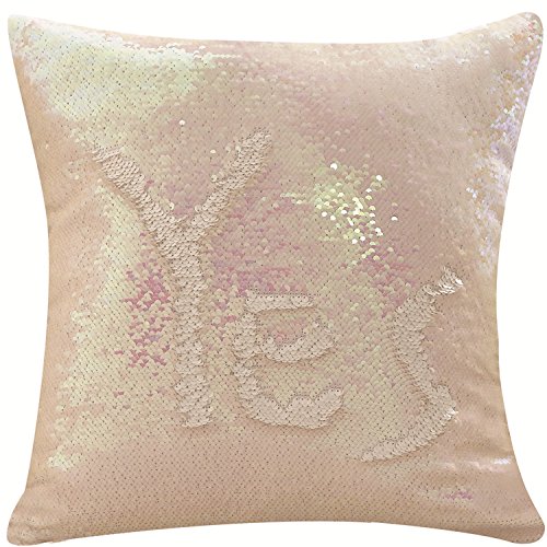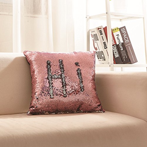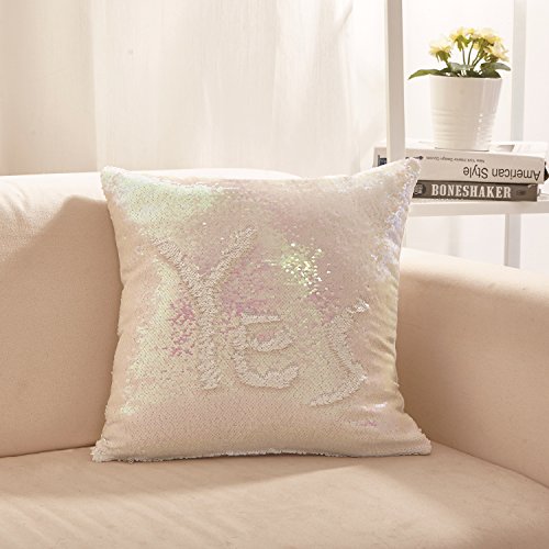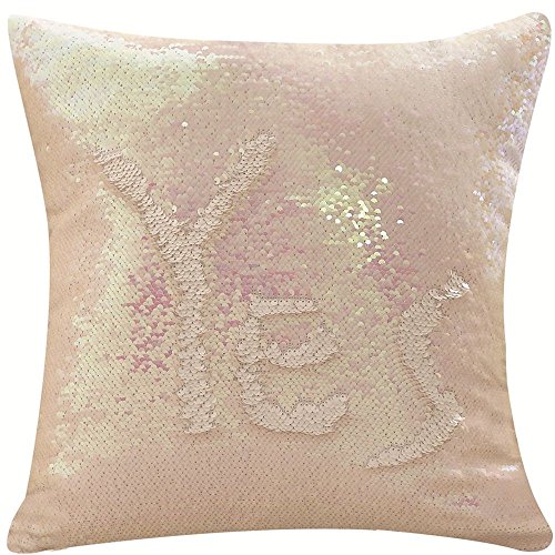 DECOSY Magic Reversible Sequin Pillow Case 1 Piece,Mermaid Decorative Throw Pillow Cushion Cover (16"x16",Pearl Pink-White)