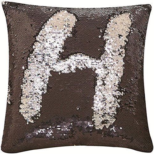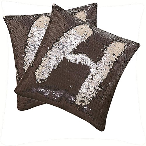 DECOSY Magic Reversible Sequin Pillow Case 1 Piece,Mermaid Decorative Throw Pillow Cushion Cover (16"x16",Brown-Sliver)