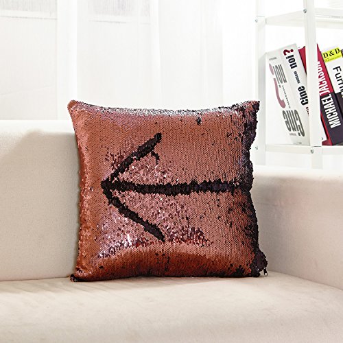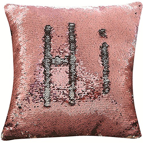 DECOSY Magic Reversible Sequin Pillow Case 1 Piece,Mermaid Decorative Throw Pillow Cushion Cover (16"x16",Rose Gold-Sliver)