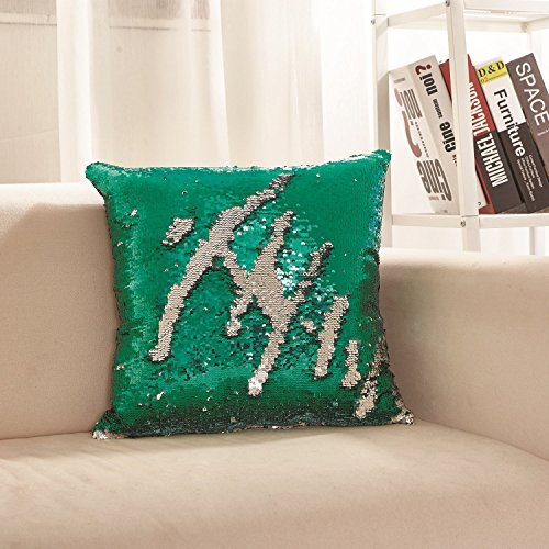 DECOSY Magic Reversible Sequin Pillow Case 1 Piece,Mermaid Decorative Throw Pillow Cushion Cover (16"x16",Green-Sliver)