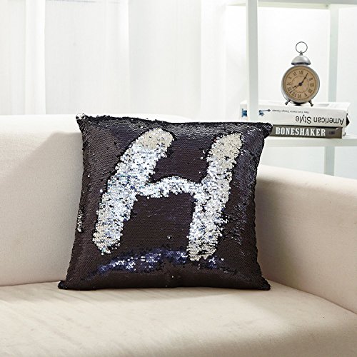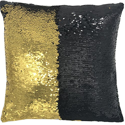 DECOSY Magic Reversible Sequin Pillow Case 1 Piece,Mermaid Decorative Throw Pillow Cushion Cover (16"x16",Black-Gold)