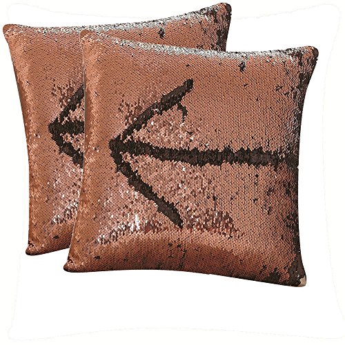 DECOSY Magic Reversible Sequin Pillow Case Pack of 2, Mermaid Decorative Arrow Throw Pillow Cushion Cover (16"x16",Light Brown