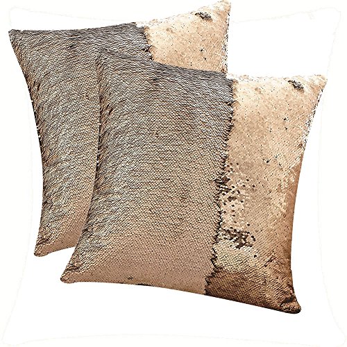 DECOSY Magic Reversible Mermaid Sequin Throw Pillow Covers Pack of 2 - Free Drawing and Writing for Kids Playing - Decorative Cushion Cover - Halloween Christmas Gift (16"x 16",Beige-Brass)