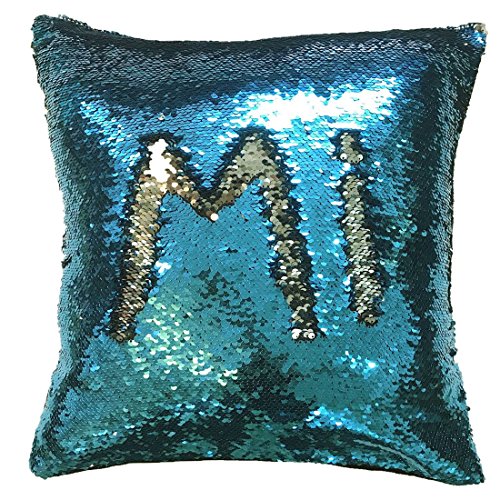 DECOSY Magic Reversible Sequin Pillow Case 1Piece,Mermaid Decorative Throw Pillow Cushion Cover (16"x16",Torquoise-silver)