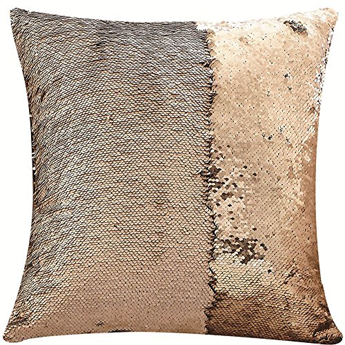 DECOSY Magic Reversible Sequin Pillow Case 1 Piece, Mermaid Decorative Throw Pillow Cushion Cover (16"x16",Beige-Brass)