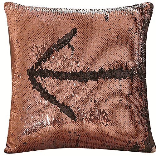 DECOSY Magic Reversible Sequin Pillow Case 1 Piece,Mermaid Decorative Arrow Throw Pillow Cushion Cover (16"x16",Light Brown