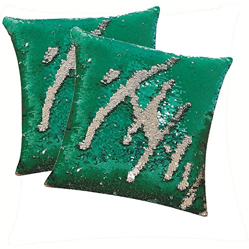 DECOSY Reversible Color for Free Drawing Sequin Throw Pillow Cover 18"x 18" Pack of 2, Decorative Mermaid Square Sofa Couch Pillowcase Cushion Cover without Pillow Insert (Green-Sliver)