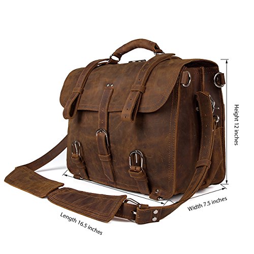 -. Feature : SENIOR MATERIALS - Crafted from pure full grain leather from Italy, decorated with silver hardware for a professional and trendy yet sturdy appearance. / DIMENSION - 16.5"L x7.5"W x12"H. The messenger bag can fit 17" laptop and other useful stuff like iPad\mobile phone\wallet\umbrella\books\documents, believe it will meet your needs. / MULTIFUNCTIONAL BRIEFCASE\BACKPACK - Includes shoulder strap and handle for flexible usage as a laptop bag, handbag, briefcase or backpack. / QUALITY WARRANTY - At least two year's quality assurance. Life-long warranty service. / REFUND GUARANTEE - If you are unsatisfied with our product for any reason, we guarantee a full refund.