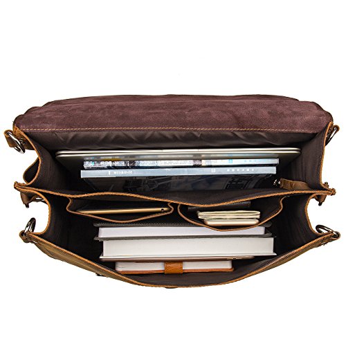 -. Title : Augus Leather Messenger Bag for Men Briefcase Travel Backpack Shoulder Bag Fit 17'' Laptop