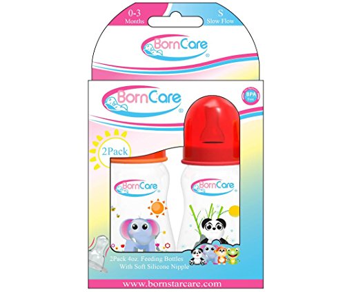 -. Title : BornCare Feeding Bottle Regular Easy grip with Silicone Nipple, Slow Flow, 4 oz., 2 Piece