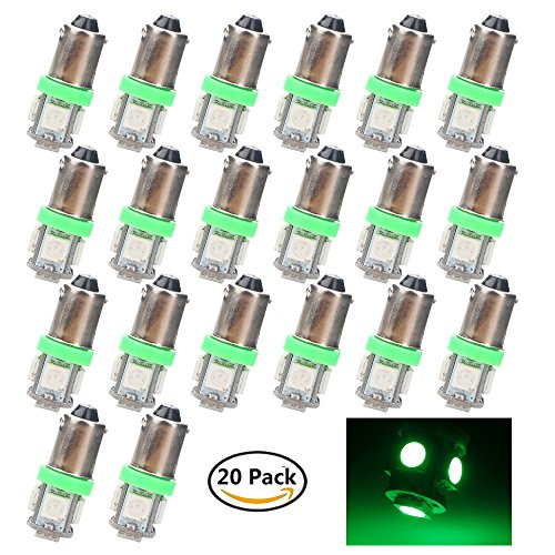 EverBrightt 20-Pack Green BA9S 5050 5SMD Led Car Door Lamp Side Maker Light Bulbs DC 12V
