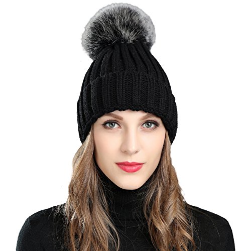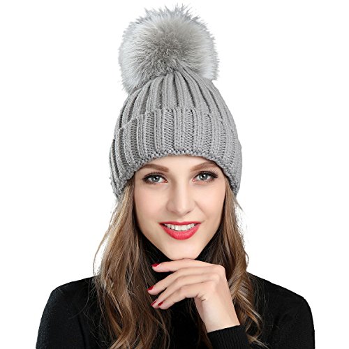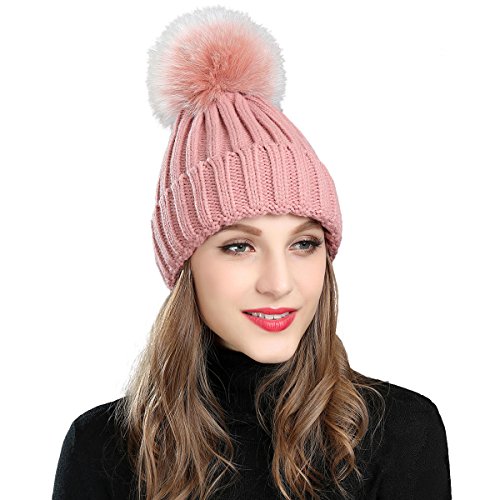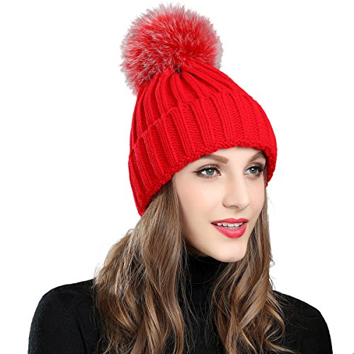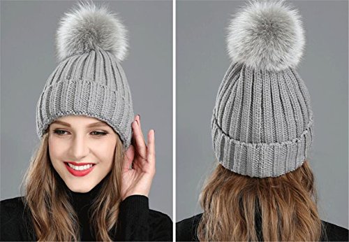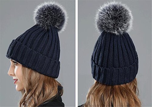 (Roffatide)/Accessories/Hats/DIRECT FROM USA/Roffatide Women Fluffy Imitation Fur Pompon Ball Chic Beanie Cute Knitted Hat Warm Skull Cap Winter