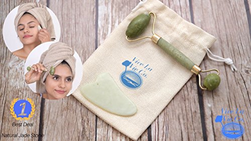 🌿Jade Roller! NON POROUS, Authentic Jade face roller, facial roller! Face roller 100% Natural Jade Roller GUA SHA SET! One of the few 100% Real NATURAL DUAL Jade Roller for face and GUA SHA SET massager and Face Slimmer Roller!