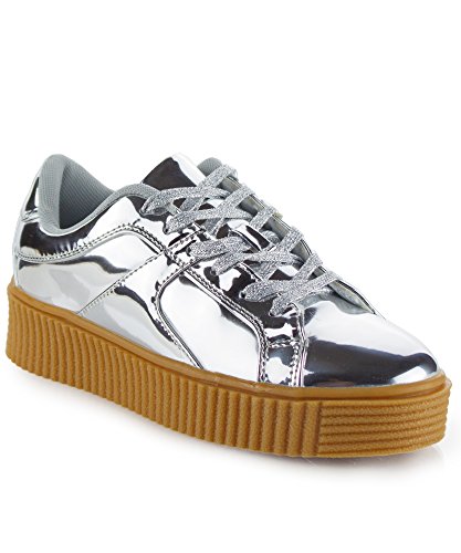-. Title : Cape Robbin Women's Fashion Patent Metallic Leather Lace Up Platform Oxford Sneakers Shoes