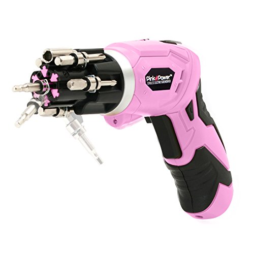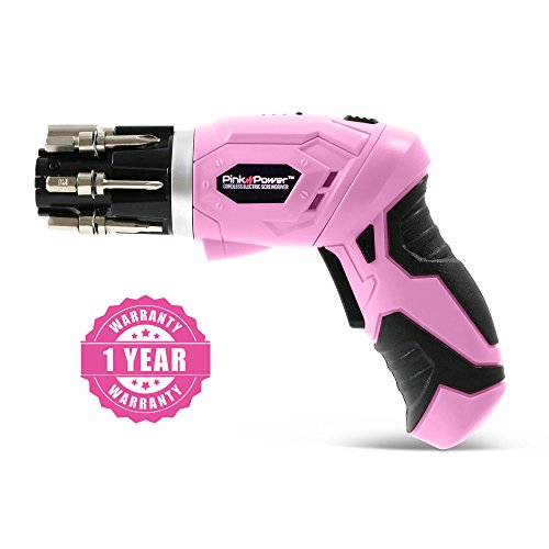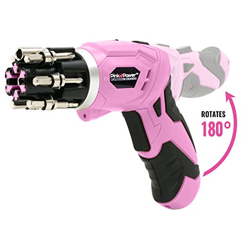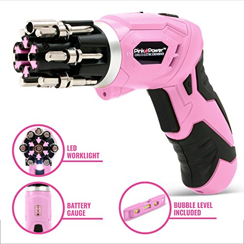 Pink Power 4.8 Volt Rechargeable Cordless Electric Screwdriver Set with Bubble Level