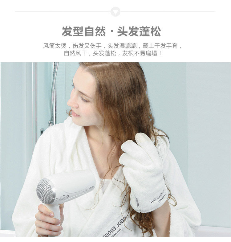 Dry hair gloves, used for shampooing, hair side edge hair, water fast, dry fast, do not damage the hair, easy to use, especially for long hair Oh!