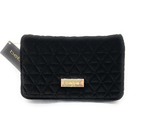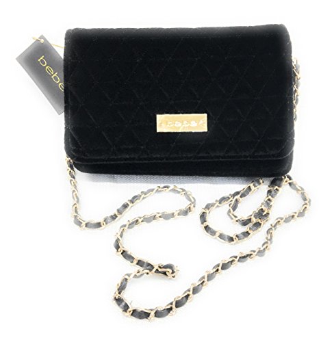 bebe Margeaux Crossbody Bag in Black Quilted Velvet, Handbag, Purse, Clutch