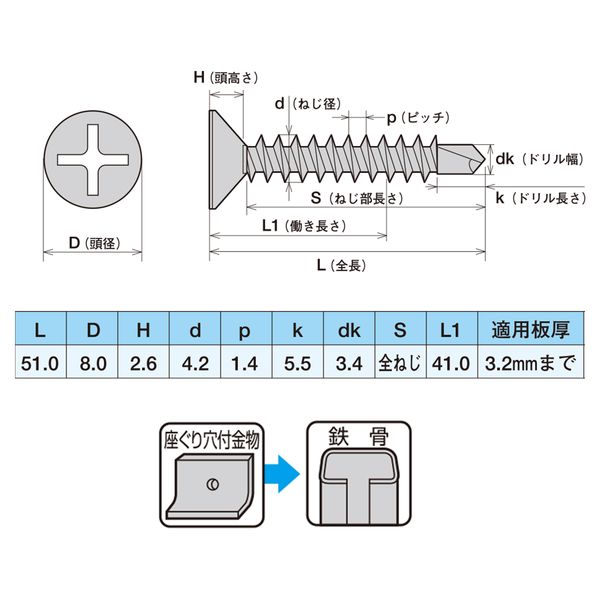 ●座ぐり穴付金物+鉄骨用ドリルビス