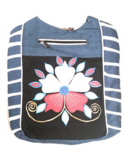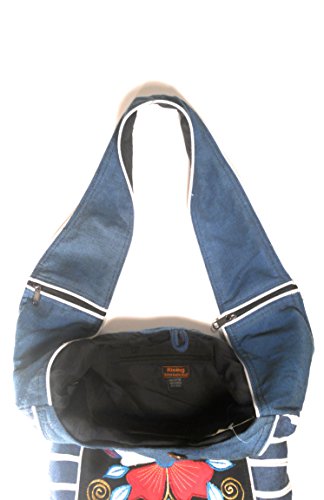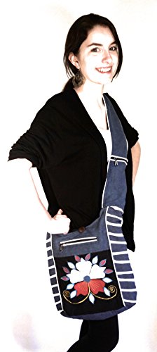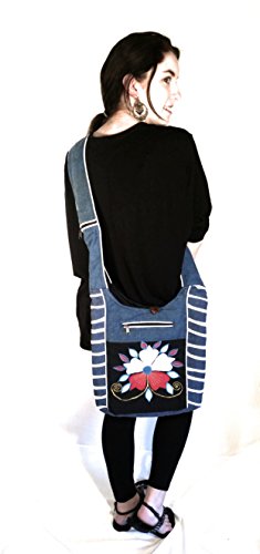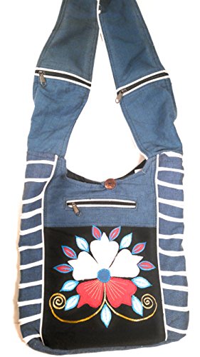 Cotton Sling Hobo Cross Body Comfortable Hand Crafted Blue/White Flower design shoulder Bag